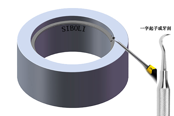 SIBOLI彈性擋圈無需用于拆卸的定制工具,在擋圈與軸或與內(nèi)孔外殼之間的間隙里,插入鈍器,以沿著徑向向外撬起自由端。